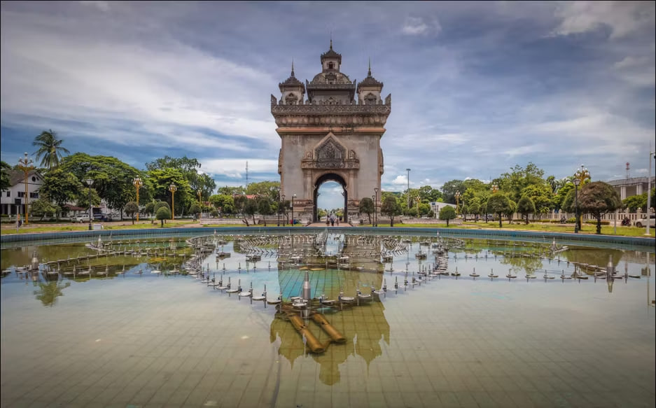 🏛️ Подъём на лаосскую копию Триумфальной арки — Патусай (Patouxai): смотровая площадка с видом на Вьентьян и Президентский дворец.