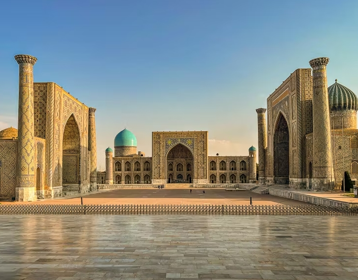 Ранний завтрак, переезд в Самарканд на комфортабельном поезде через живописные степи. Экскурсия по городу: площадь Регистан с тремя величественными медресе; мавзолей Гур-Эмир — усыпальница Тамерлана; мечеть Биби-Ханым — одна из крупнейших на Востоке; Шахи-Зинда — комплекс мавзолеев с изысканной керамикой; базар Сиаб с национальными сладостями и специями. После 20:00 — переезд в Бухару на поезде, размещение в гостинице.