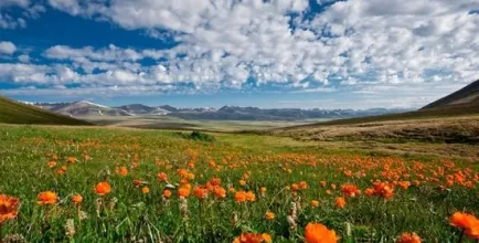 «Марсианские» горы (Чаган-Узун). Садимся на внедорожники и едем 5 км по дороге, похожей на фильм «Безумный Макс». Цель — горы неземных, рыжих и красных оттенков. 500 миллионов лет назад здесь было дно океана, и теперь можно найти окаменелости. На фоне — снежные пики четырёхтысячников Южно-Чуйского хребта. Обедаем с видом на «Марс».
