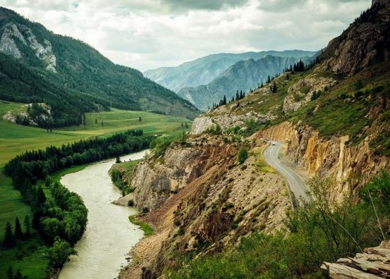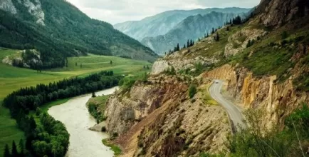 Далее едем по Чуйскому тракту. Видим реку Катунь, скалистые горы. Проезжаем лесистый Семинский перевал с кедровой тайгой. Останавливаемся у живописных скал «Зубы Дракона» на реке. Также посещаем «Лохматую ферму» с животными.