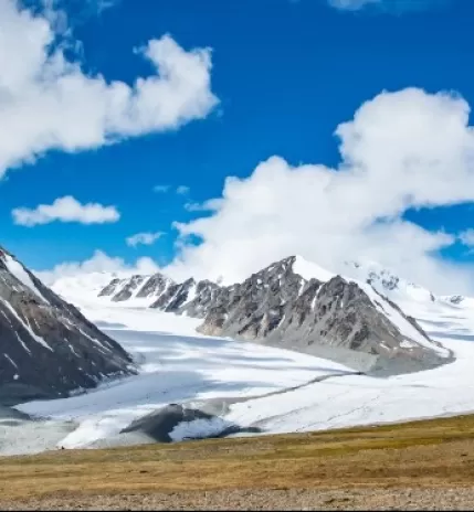 От начальной точки в ущелье нас ждёт пеший маршрут. Несмотря на относительно небольшой километраж (~15 км), предстоит серьёзный набор высоты около 800 метров. Нашей главной целью станет один из старейших ледников региона — ледник Актуру. Вчера мы любовались им издалека, а сегодня у вас будет уникальная возможность почувствовать его холод и мощь, потрогав руками древний лёд. По пути также посетим живописное Голубое озеро.