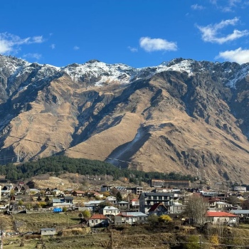 Заселение в отель с видами на гору Казбек (5047 м).