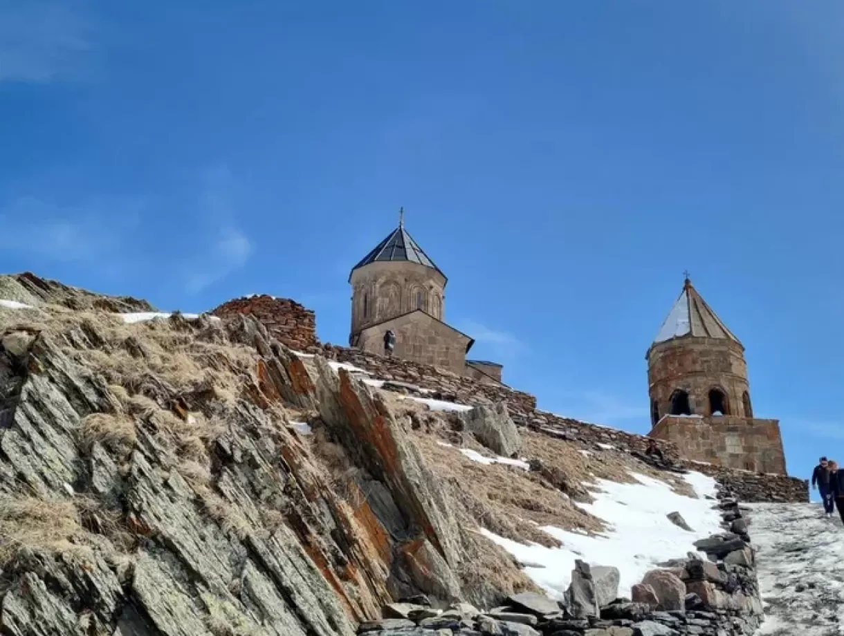Обед и путешествие к храму Святой Троицы в Гергети (XVII век). Это знаковая встреча с Грузией: древняя церковь на фоне вечных снегов, тишина и лёгкий трекинг для желающих.
