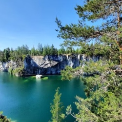 Свободное время в горном парке Рускеала (мраморный каньон, итальянский карьер, подземные штольни), водопады Ахинкоски («А зори здесь тихие»), обед в кафе на берегу Ладоги и подъём на гору Паасонвуори с круговой панорамой.