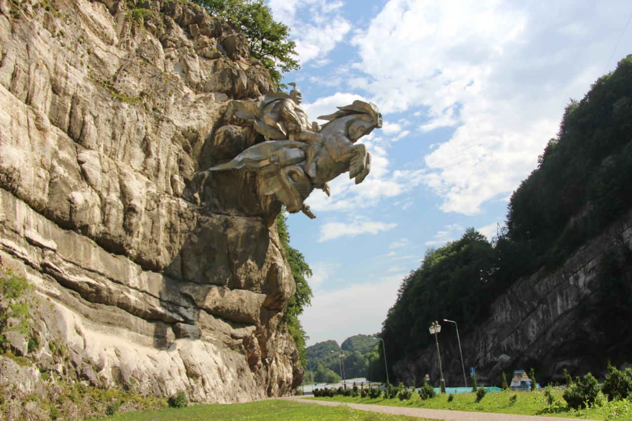— высокогорное село Верхний Згид (2047 м) с арт-объектом «гордый джигит»
