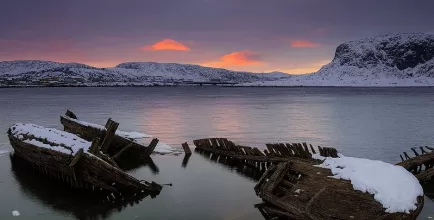 Финальный день – микс мистики и истории. Самые смелые могут испытать невесомость: погрузиться в Баренцево море в специальном костюме и выйти абсолютно сухими. Затем – пляж «Драконьи яйца», усыпанный идеально круглыми камнями, и «гнездо дракона» – место, от которого веет средневековым эпосом. Батарейский водопад, самый северный в европейской части России, обрушивается с высоты прямо в океан. А после – кладбище кораблей: ржавые скелеты рыбацких лодок, похожие на выбросившихся китов. И финальная точка – заброшенная школа на берегу Северного Ледовитого океана. Здесь когда-то звенели детские голоса, а теперь гуляет ветер. Ощущение, что время остановилось. После – трансфер в Мурманск и прощание с Заполярьем.