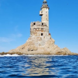 Старт от поселка Новиково, названного в честь крейсера «Новик», принявшего бой в 1904 году. Выходим в море на лодках ПВХ, проходим 35 км вдоль мысов Слюда и Мраморный. Цель — маяк Анива на скале Сивучей: сложнейший инженерный проект эпохи Карафуто. На обратном пути — высадка на мысе Мраморный. Скала здесь сложена мрамором с вкраплениями кварцитов, андезитов, опалов, халцедонов. По всей акватории высокая вероятность встретить касаток.