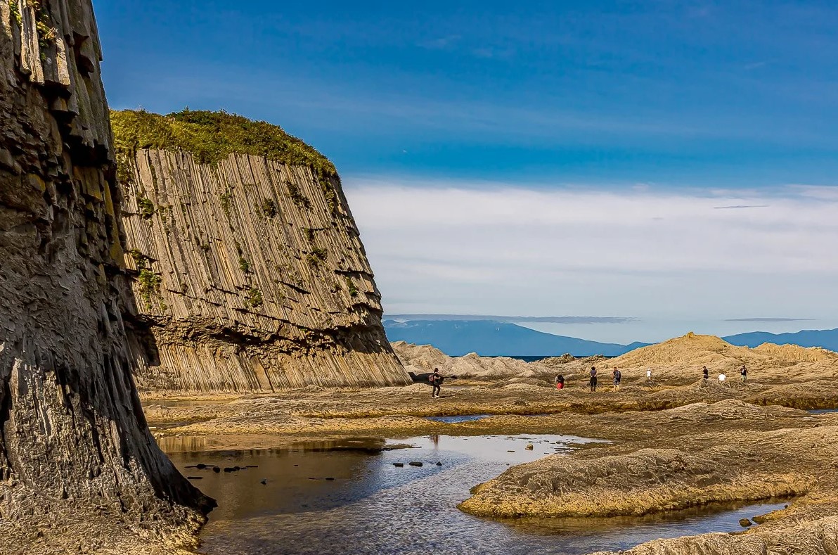 Вторая половина дня — мыс Столбчатый. Риолитовые колонны высотой до 50 метров, идеальные пяти- и шестигранники, созданные медленным застыванием лавы. Одни напоминают трубы органа, другие — мостовую или панцирь черепахи.