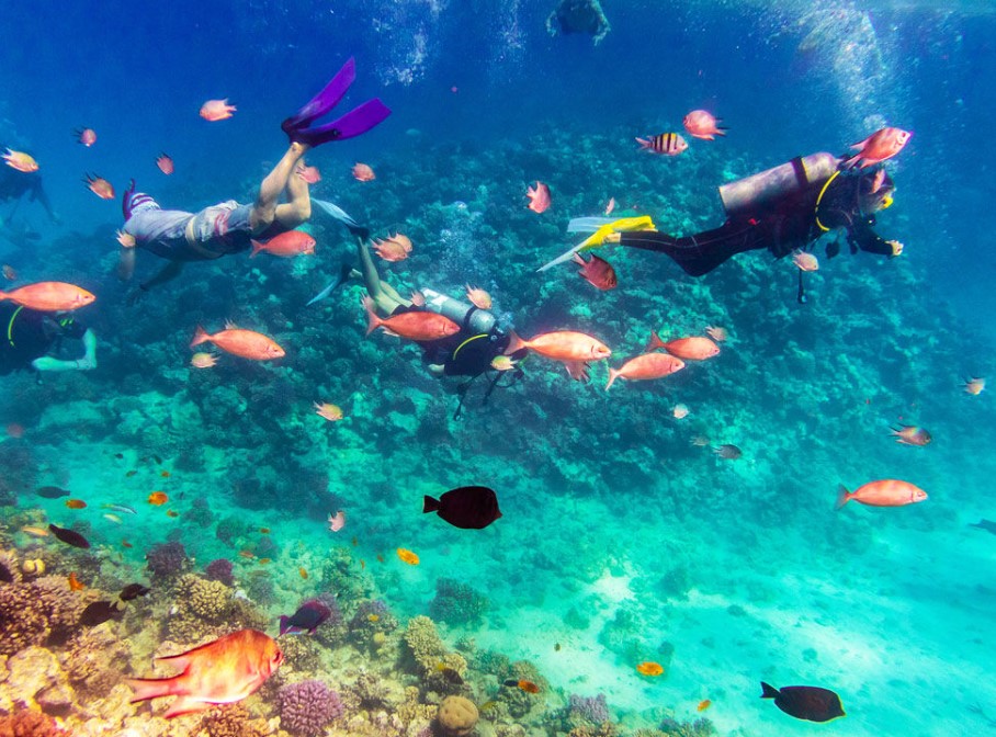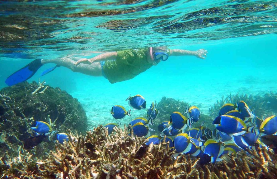 🔹 Снорклинг на местном рифе: тропические рыбы, морские звёзды, мурены, скаты
