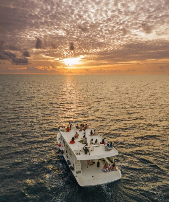 Каждый день — новое приключение. Мы выходим в океан, ищем рифы, лагуны, места скопления мант и акул, ныряем с маской, обедаем на палубе и встречаем закаты с бокалом в руке. А если повезёт — ночью увидим свечение фитопланктона.